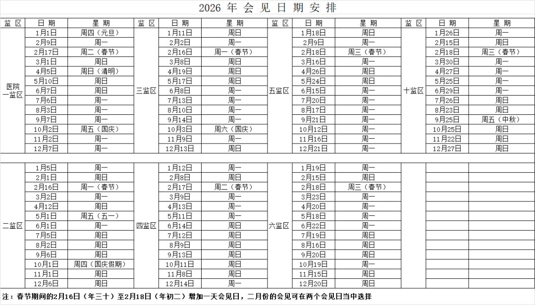 浙江省第四监狱2026年会见日期安排